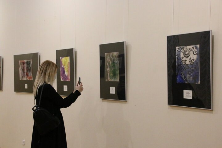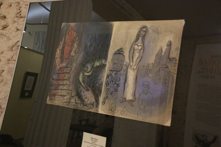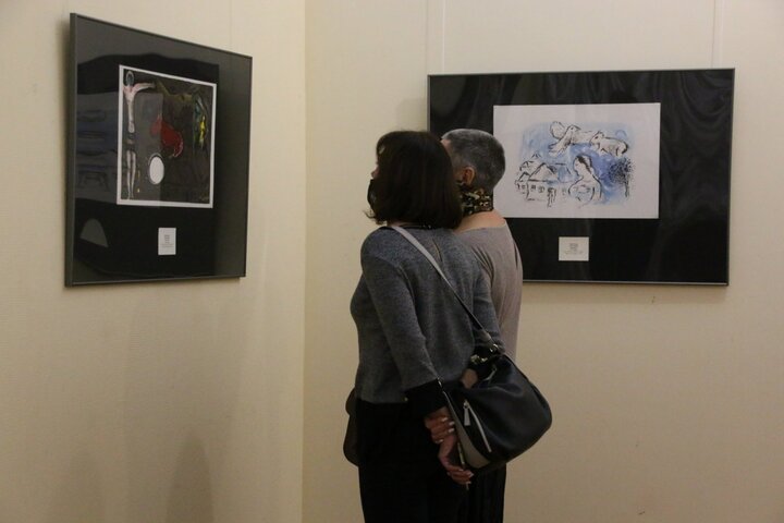 Шагал — мастер графики. В его времена это было популярно и востребовано. Сам Шагал говорил, что в определенный момент был рад отказаться от цвета. Он все время искал. Многие работы были созданы с помощью магического талисмана. Они также представлены на выставке», — рассказала собравшимся Яна Кириллова.