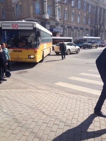 В Саратове на перекрестке улиц Московской и Чапаева произошло ДТП. По сообщениям очевидцев, столкнулись автобус 90-го маршрута и Mazda CX-7. Движение по улицам Московской и Чапаева в результате аварии оказалось частично парализовано.