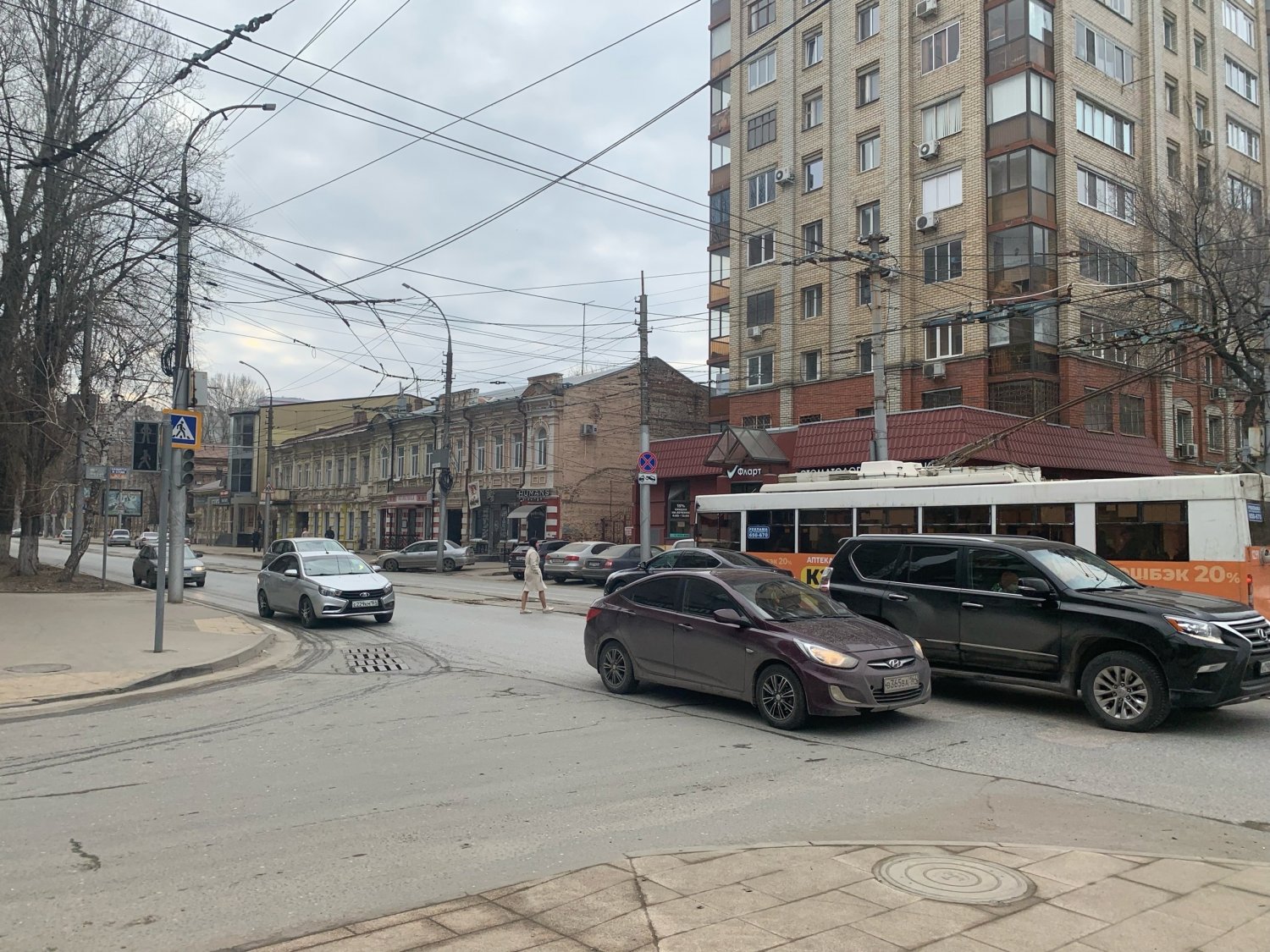 Из-за неработающих светофоров машины и общественный транспорт едут хаотично, а пешеходам приходится перебегать дорогу, поскольку их не всегда пропускают. Как долго это продолжается — неизвестно.