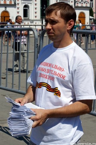 Активисты саратовского отделения партии "Свободная Россия" провели у памятника Чернышевскому пикет, посвященный Дню России. Плакатами "Остановим наглую ложь СМИ", "Хватит платить дань США", "Мы за правду и нравственность в средствах массовой информации" участники выразили несогласие со СМИ, информационная политика которых, по мнению пикетчиков, отражает интересы США. Напомним, с аналогичными плакатами активисты уже выходили на улицы меньше месяца назад.