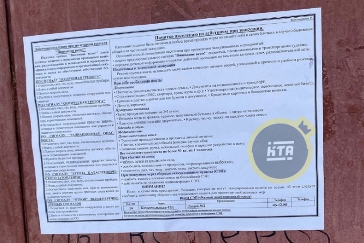 В связи с этим мы обратились за комментарием в пресс-службу администрации Балаковского района. Там подтвердили, что памятки населению по действиям различного рода чрезвычайных ситуаций начали распространять через управляющие компании. Это делается «в рамках профилактики».