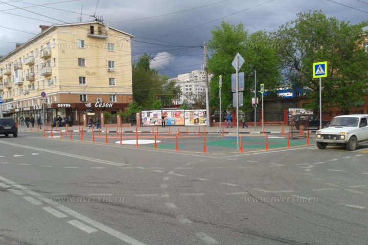 Привокзальная площадь в Саратове изменила свой внешний вид. Асфальт оказался разрисован разноцветными кругами, по периметру площади установили яркие неоновые столбики, а кроме того на пешеходных переходах установили светофоры и нарисовали новые бело-желтые "зебры". Также рабочие монтируют пирамиду в центре площади.