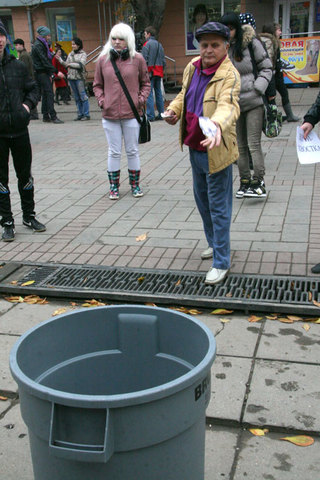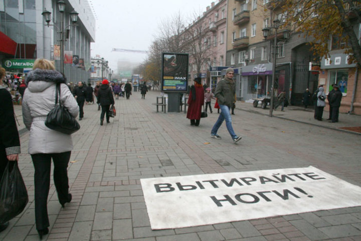Возле ресторана «Макдональдс» прошла акция под оригинальным названием «Трёхочковый», проведённая движением прогрессивной молодёжи «Мой город!». Всем прохожим предлагали вытереть ноги о белый коврик, постеленный прямо посередине проспекта. Тех, кто соглашался на это, вели на «баскетбольную площадку» - к внушительным пластмассовым бакам. Нужно было попасть в урну скомканной бумажкой с некоторого расстояния. В это время из динамиков неслись довольно резкие слоганы: «Мы не хотим жить в Засратове! Твой дед дошёл до Берлина, а тебе сложно дойти до урны?» Тот, кто попадал в бак, получал магнитик на холодильник. Среди метко бросающих оказались дети, молодые люди и даже почтенные бабушки. Организаторы данного действа — студенты различных вузов города Саратова. Они утверждают, что в их действиях нет никакой политической подоплёки — просто есть желание сделать родной город чище. Кстати, интересно, что в названии «Мой город!» первое слово — глагол.