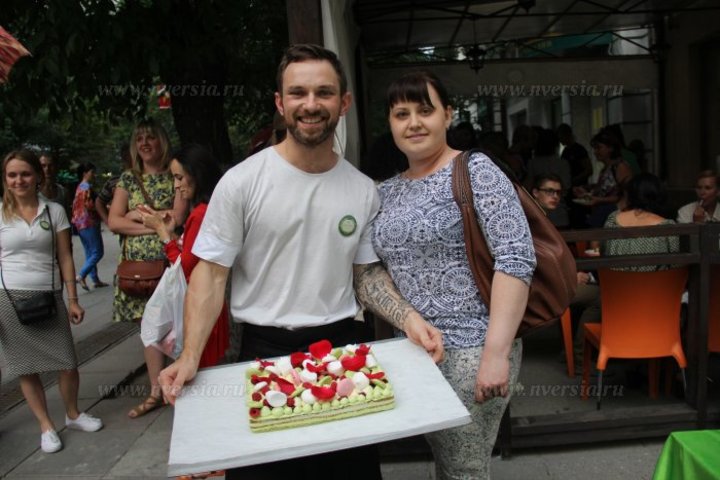 В рамках празднования Международного дня торта на проспекте Кирова около французской кондитерской Peche Mignon прошел мастер-класс по приготовлению десерта. Бренд-шеф Даниил Кабачевский продемонстрировал собравшейся публике искусство декорирования бисквита.
