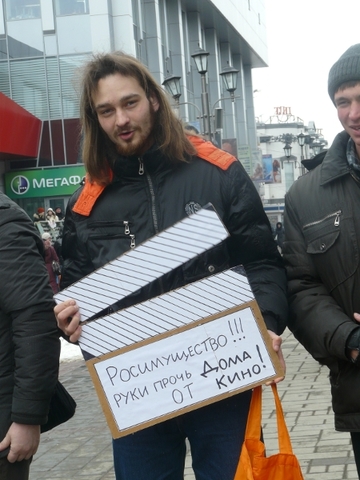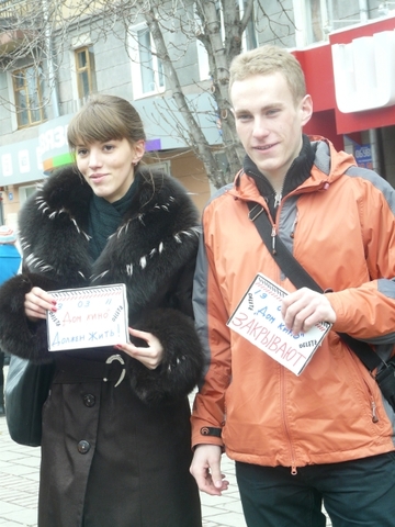 На проспекте Кирова сегодня прошла давно запланированная акция в защиту Дома Кино. Около 15 человек, принявшие в ней участие, принесли с собой самодельные «хлопушки», на которых обычно пишут название фильма, номер дубля и прочее и ровно в час дня по команде «Стоп-кадр!» вынули их из сумок и сделали несколько хлопков. Таким образом молодежь пытается привлечь внимание к непростой ситуации, сложившейся вокруг Дома Кино.