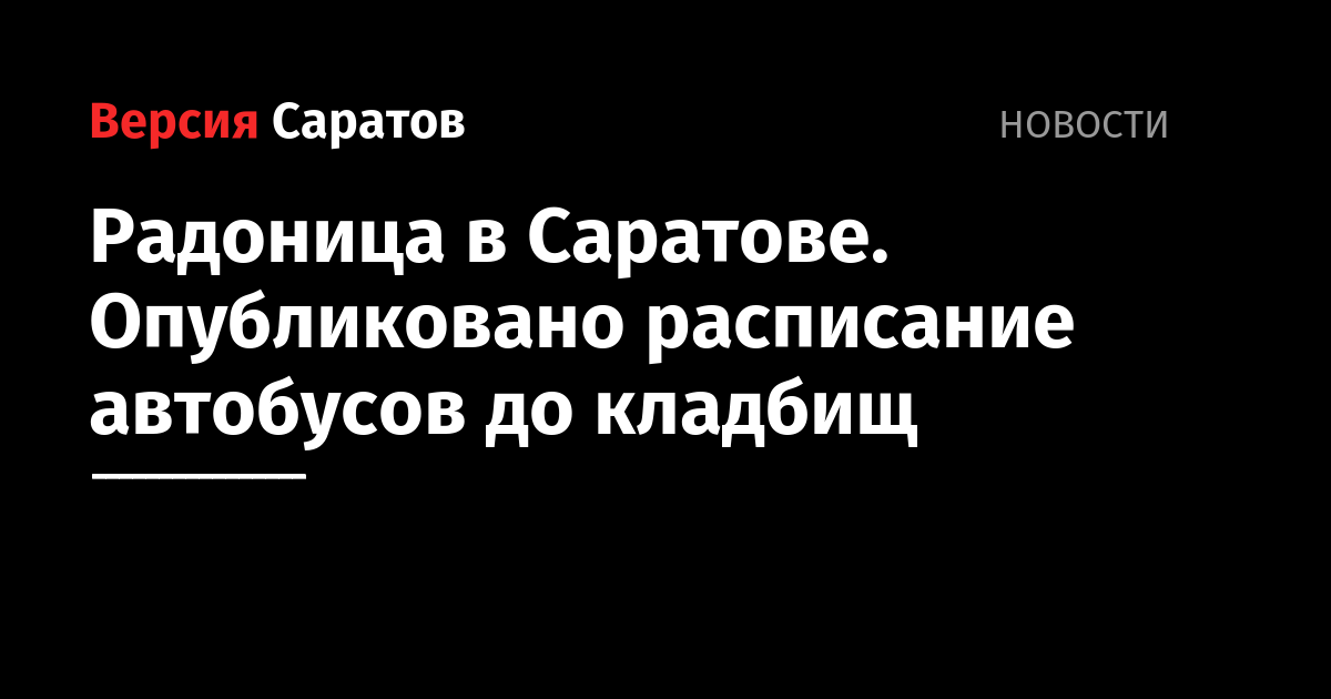 В связи с днем особого поминовения усопших (Радоница) 29 апреля с 7:00 до 18:00 будет организована работа общественного транспорта для посетителей кладбищ Саратова. Об этом рассказали в городской администрации. Автобусы будут ходить по следующему расписанию: