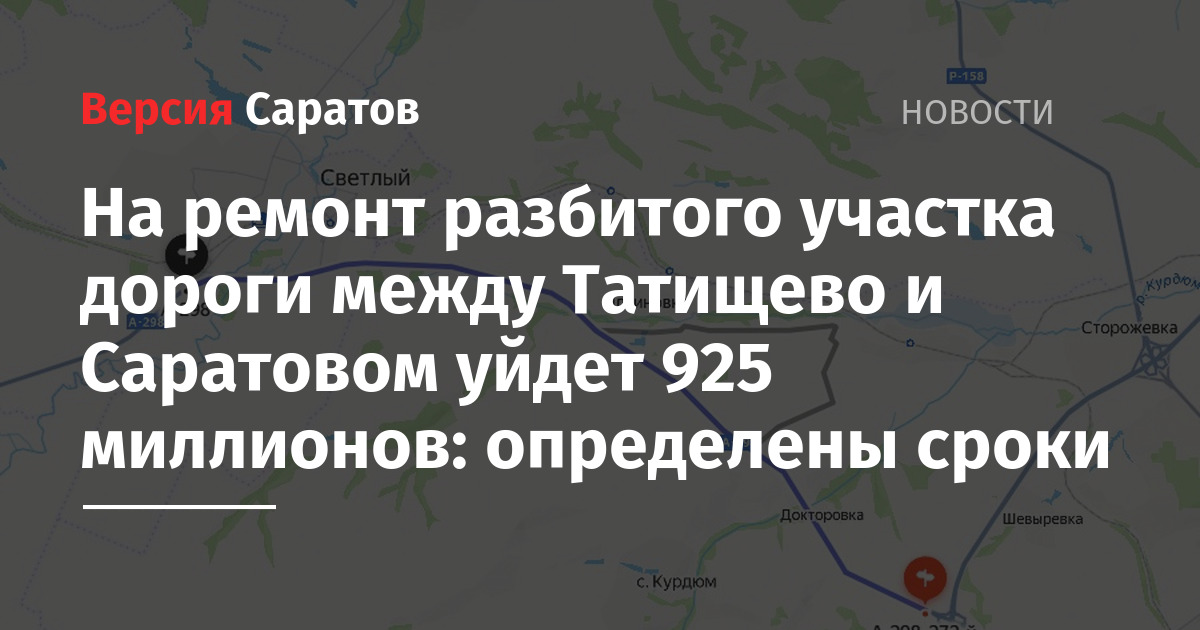 За ремонт участка автомобильной дороги А-298 «Р-208 „Тамбов — Пенза“ — Саратов — Пристанное — Ершов — Озинки — граница с Республикой Казахстан» готовы заплатить 924,7 миллиона рублей. Ремонту подлежат 15,7 километра трассы (256-271,75 км) — участок от Саратовской кольцевой автодороги до поворота на поселок Татищево в районе АЗС «Роснефть».