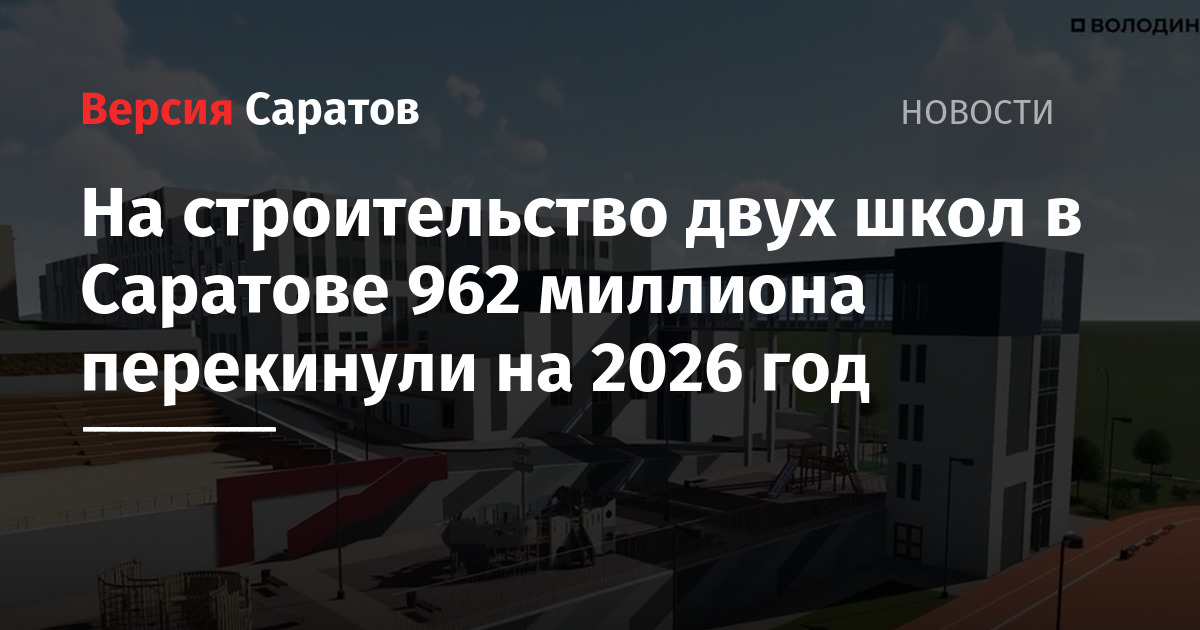 Изначально предполагалось, что школа на 1100 мест в сквере «Территория детства» рядом с дворцом пионеров на проспекте Строителей и школа на 1500 мест в 8-м микрорайоне Солнечного-2 в Кировском районе Саратова будут построены и введены до 1 сентября 2027 года. Однако Володин призвал строителей завершить все работы в 2026 году. Теперь стало известно, что соответствующее финансирование также перенесено.