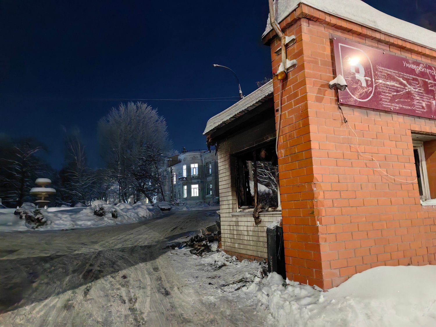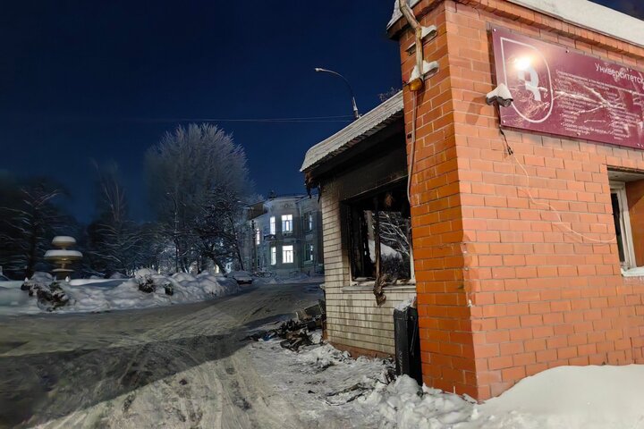 Сгорела центральная проходная, которая находится со стороны Большой Садовой. Судя по предоставленным снимкам, она полностью выгорела.