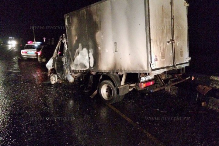 Сегодня ночью на объездной дороге Саратова недалеко от Сторожевки столкнулись два грузовика. По словам очевидцев, водитель "ГАЗели" не справился с управлением и врезался в трубовоз. От удара "ГАЗель" загорелась. Свидетели происшествия и водители проезжавших мимо автомобилей подоспели на помощь и вытащили мужчину из горящего грузовика.