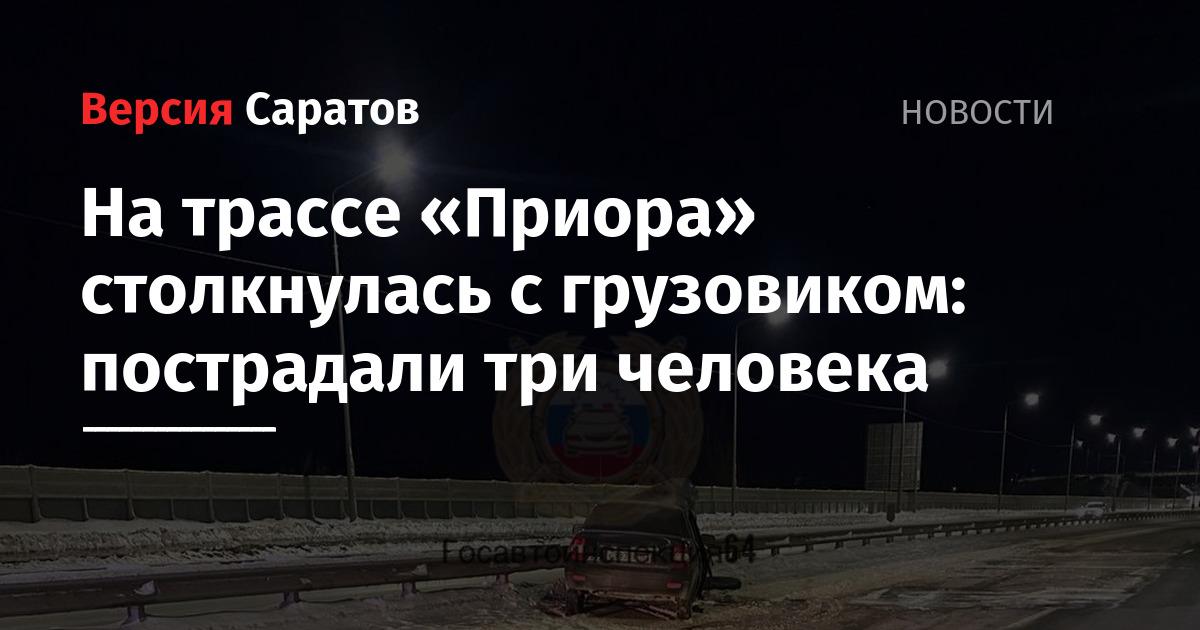 В Саратовской области сегодня вечером возле села Пристанное на трассе «Тамбов — Пенза» — Саратов — Пристанное — Ершов — Озинки — граница с Республикой Казахстан» произошло ДТП с участием большегруза. По информации городской Госавтоинспекции, «Лада Приора», которой управлял 34-летний мужчина, столкнулась с большегрузом MAN. После столкновения, легковушка отлетела в сторону и врезалась в ограждение.