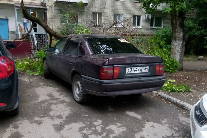 В Саратове очередное упавшее дерево повредило автомобиль. На этот раз инцидент произошел у дома № 53 на улице Рахова.