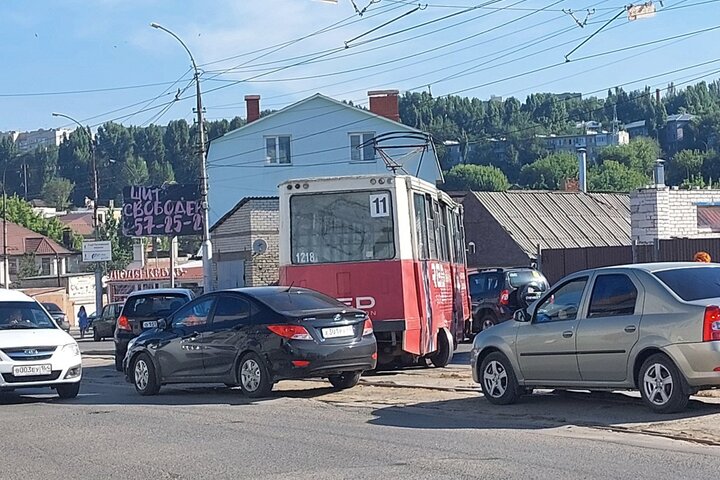 Машины и автобусы вынуждены были объезжать трамвай, образовалась огромная пробка.