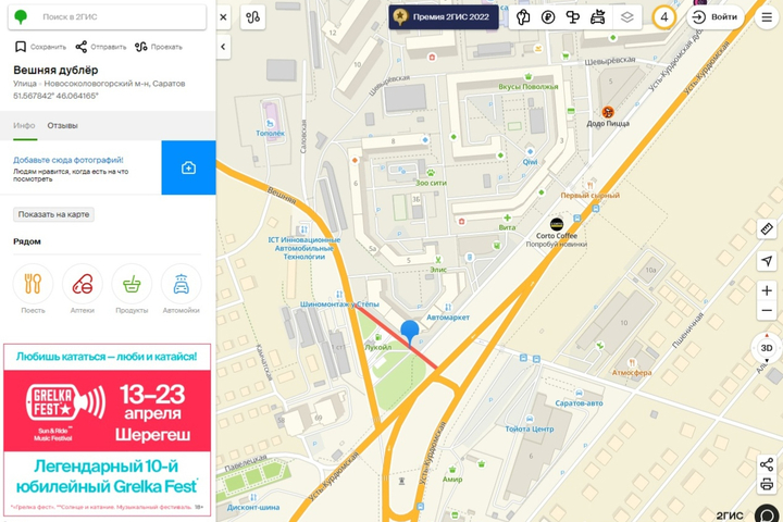 Отметим, указанная развязка находится на въезде в посёлок Юбилейный со стороны микрорайона Аэропорт — у дома № 1 по улице Усть-Курдюмской. Она также является началом дороги из Юбилейного в Солнечный и очень загружена, особенно утром в час пик.