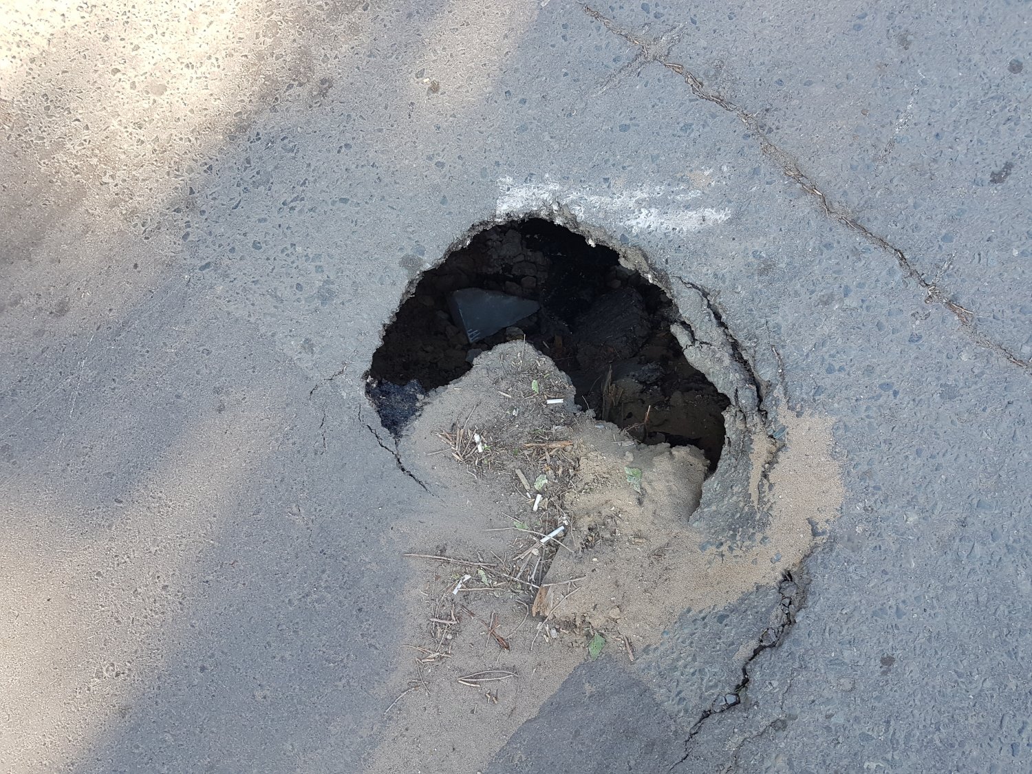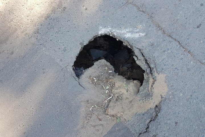 Яма появилась недалеко от перекрестка с Вольской. «Судя по тому, что под дорогой видны пустоты, провал будет только увеличиваться. Сейчас опасный участок ничем не огорожен. Водителям нужно быть внимательными, чтобы не повредить свои машины», — предупредил горожанин.