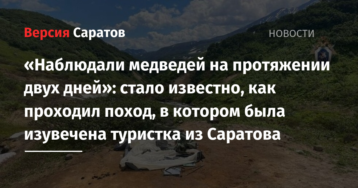 В это время на путешественницу из Саратова, оставшуюся в палатке, напал медведь. Женщина получила укушенные и скальпированные раны, квалифицированные как причинившие тяжкий вред здоровью. Уголовное дело направлено в Елизовский районный суд», — рассказали в камчатской прокуратуре.