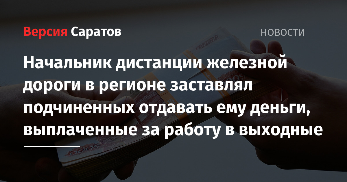 Начальник дистанции железной дороги в регионе заставлял подчиненных отдавать ему деньги, выплаченные за работу в выходные