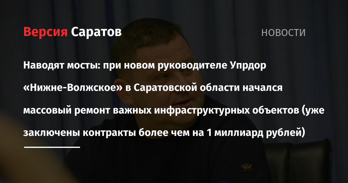 Наводят мосты: при новом руководителе Упрдор «Нижне-Волжское» в Саратовской области начался массовый ремонт важных инфраструктурных объектов (уже заключены контракты более чем на 1 миллиард рублей)