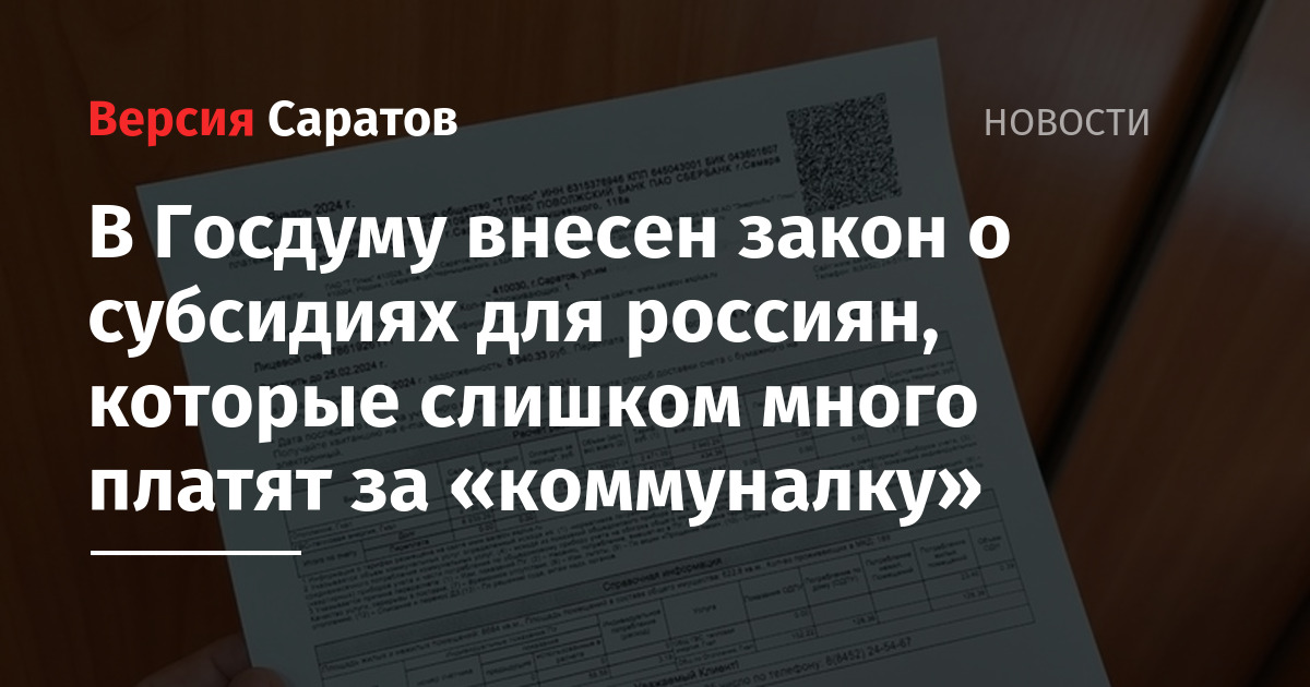 В Госдуму внесен закон о субсидиях для россиян, которые слишком много платят за «коммуналку»