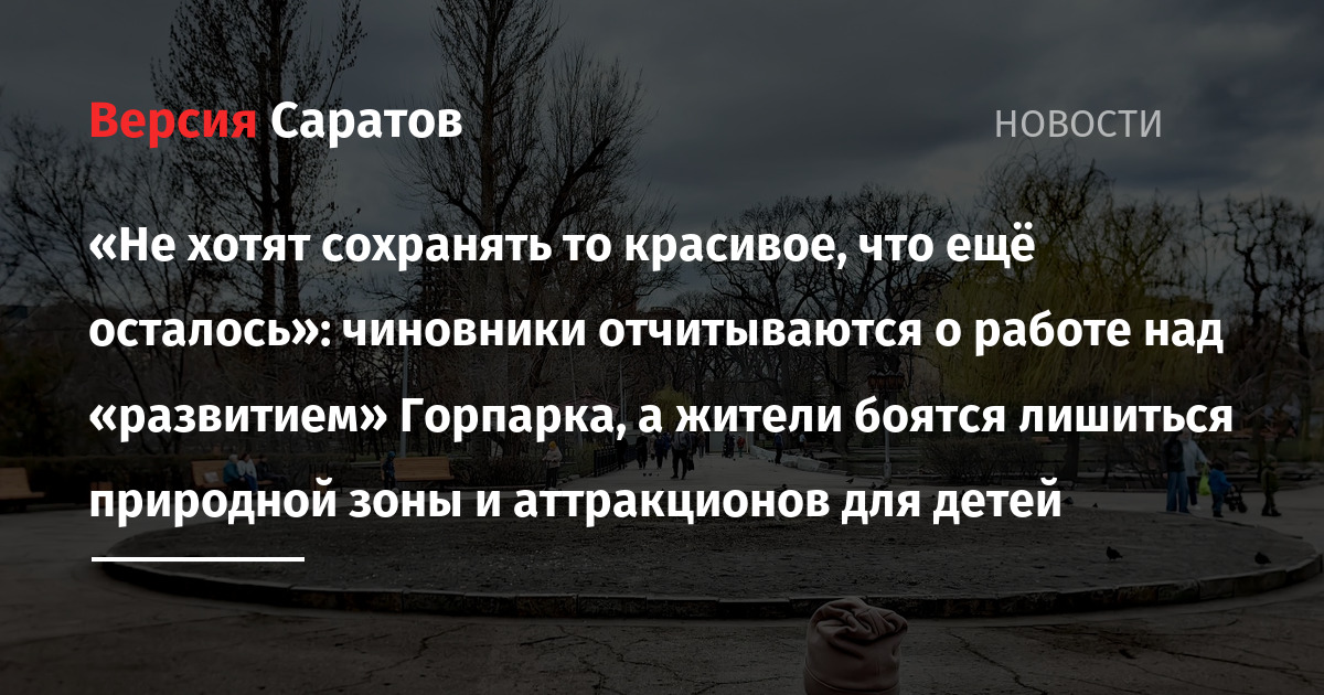 - Мэрия разглашает: после народного возмущения, власти Саратова заявили, что закроют на всё лето лишь половину Горпарка (и публично проговорились о важном)
