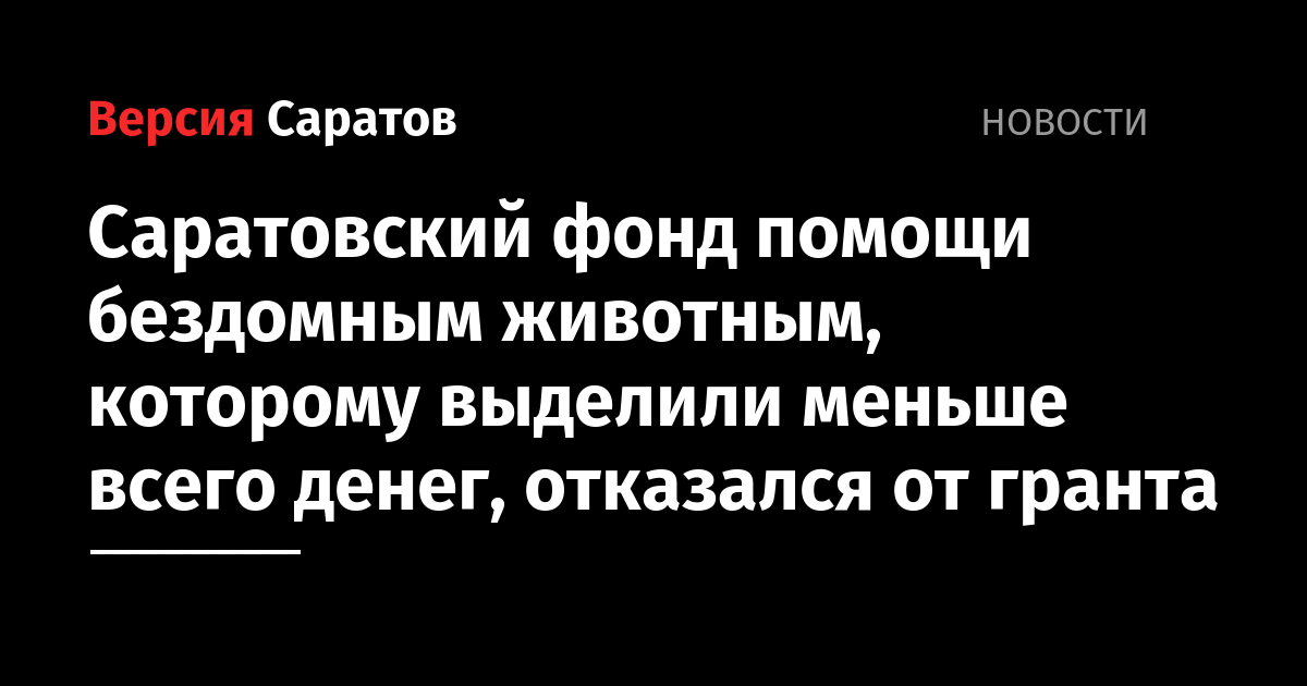 Фонд помощи бездомным животным «Верность-Саратов» отказался от 700 тысяч рублей. Эти деньги ранее фонду выделили в качестве гранта. Об этом сообщается на странице организации в соцсети «ВКонтакте».