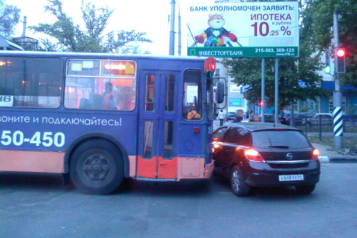Из-за пробки, образовавшейся на Рахова от Советской до Вавилова, троллейбус не смог сразу проехать через перекресток и притормозил. В это время «опель астра» с Советской попытался его объехать, а троллейбус тем временем начал движение и слегка задел левое крыло иномарки, которая при этом почти не пострадала, если не считать оторванного зеркала.