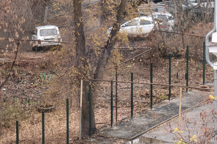 Ровно неделю назад — 14 ноября — ИА «Версия-Саратов» писало, что на территории образовательного учреждения пилят деревья и режут старый забор на части.