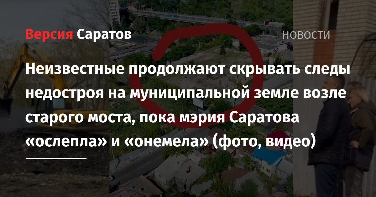 А спустя четыре дня, сегодня — 24 апреля — читатели ИА «Версия-Саратов» вновь зафиксировали подозрительные работы на таинственном муниципальном участке. На сей раз в кадр попал не только экскаватор, который, предположительно, закапывает остатки строительных конструкций и ровняет место, где складировался мусор. Теперь на видео есть лица людей, видимо, курировавших производство таких работ.