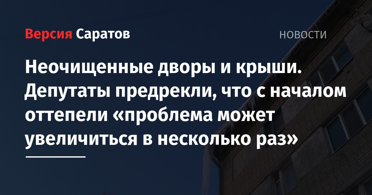 Напомним, совсем недавно постоянный читатель ИА «Версия-Саратов» рассказывал об опасном доме в самом центре Саратова: с крыши здания по адресу Мирный переулок, 6, свисали огромные сосульки. После нашей публикации на эту тему возле дома появились рабочие, которые сбили сосульки.