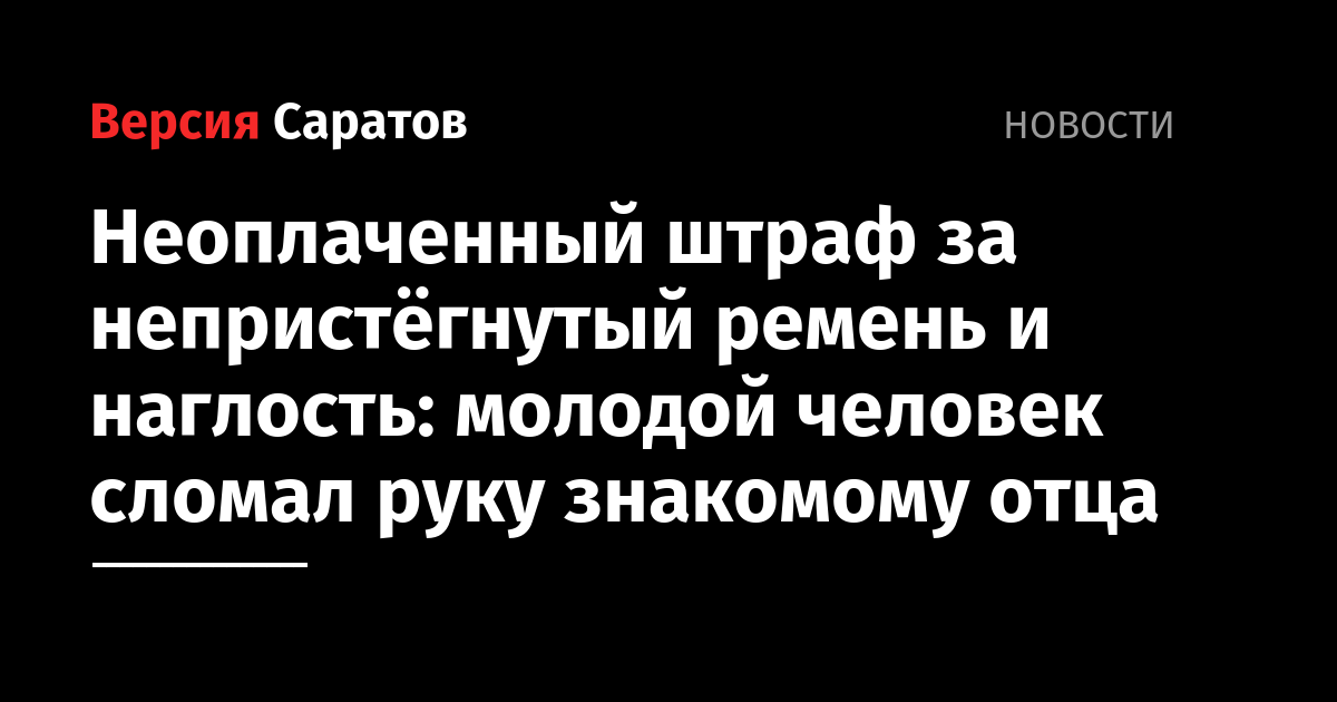 По информации ведомства, в полицию обратился 42-летний житель Балаково. Он рассказал, что житель посёлка Алексеевка Хвалынского района во время конфликта ему сломали руку. Заявитель пояснил, что злоумышленник является сыном приятеля, а поводом для возникновения неприятной ситуации стал штраф с камер наблюдения, который, по мнению скандалиста, должен был оплатить потерпевший.