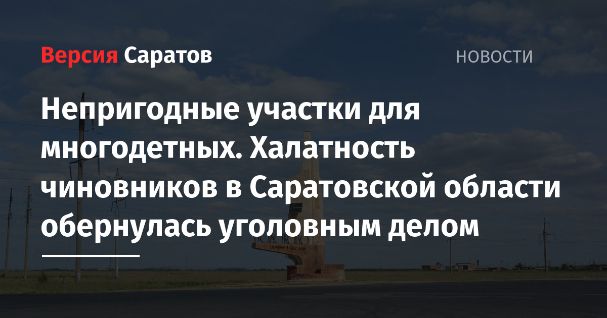 - Непредоставление земельных участков многодетным в Саратове обернулось ещё одним уголовным делом