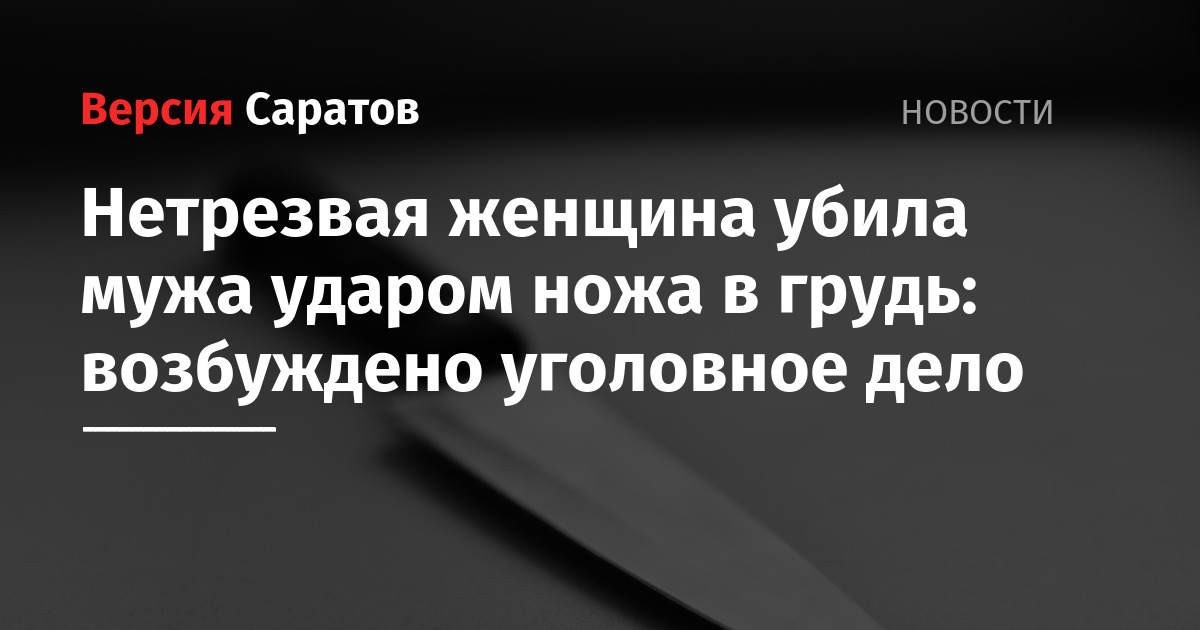 По информации ведомства, 14 марта нетрезвая женщина находилась в квартире дома на улице Центральная в селе Михайловка Калининского района. Там она поругалась с 61-летним супругом. В ходе конфликта жена ударила мужа ножом в грудь. Пострадавший скончался на месте.