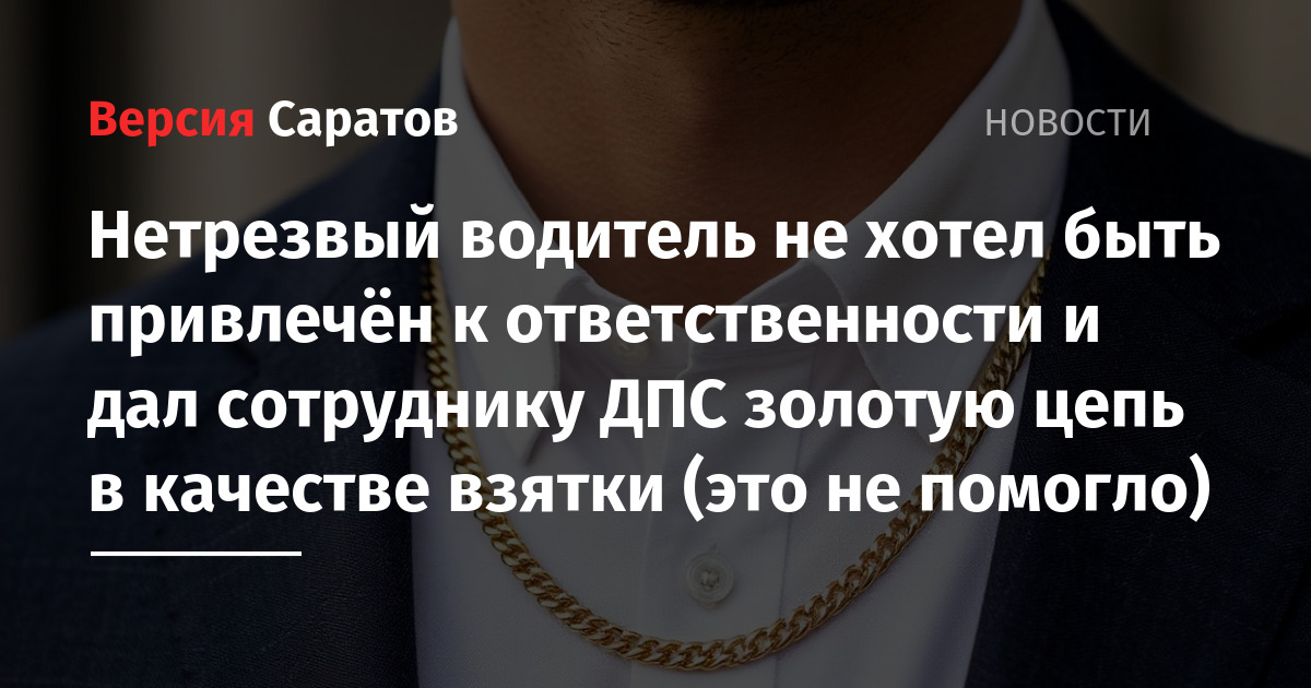 Как стало известно ИА «Версия-Саратов», горожанин ехал на Haval. Сотруднику полиции он попытался передать золотую цепь.