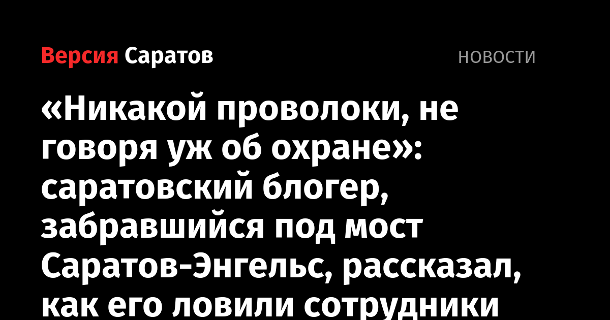 Один из саратовских школьников, на прошлой неделе забравшихся под мост Саратов-Энгельс, выложил на своем YouTube-канале видео, в котором рассказал, что было после того, как его с приятелем задержали. Он также заметил, что сожалеет о том, что выложил кадры прогулки в Сети. «Возможно, не стоило, потому что сейчас много проблем может из-за этого быть», — признался он.