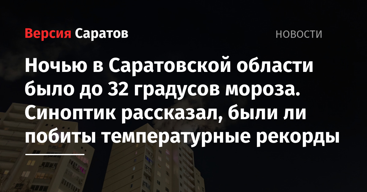 По его словам, самые низкие температуры были зафиксированы в Энгельсе (-32,1) и рядом с аэропортом «Гагарин» (-32,6). В Калининске и Перелюбе было по -30 градусов, в Красном Куте -30,9. В Саратове столбики термометров ночью опускались до -28,8.