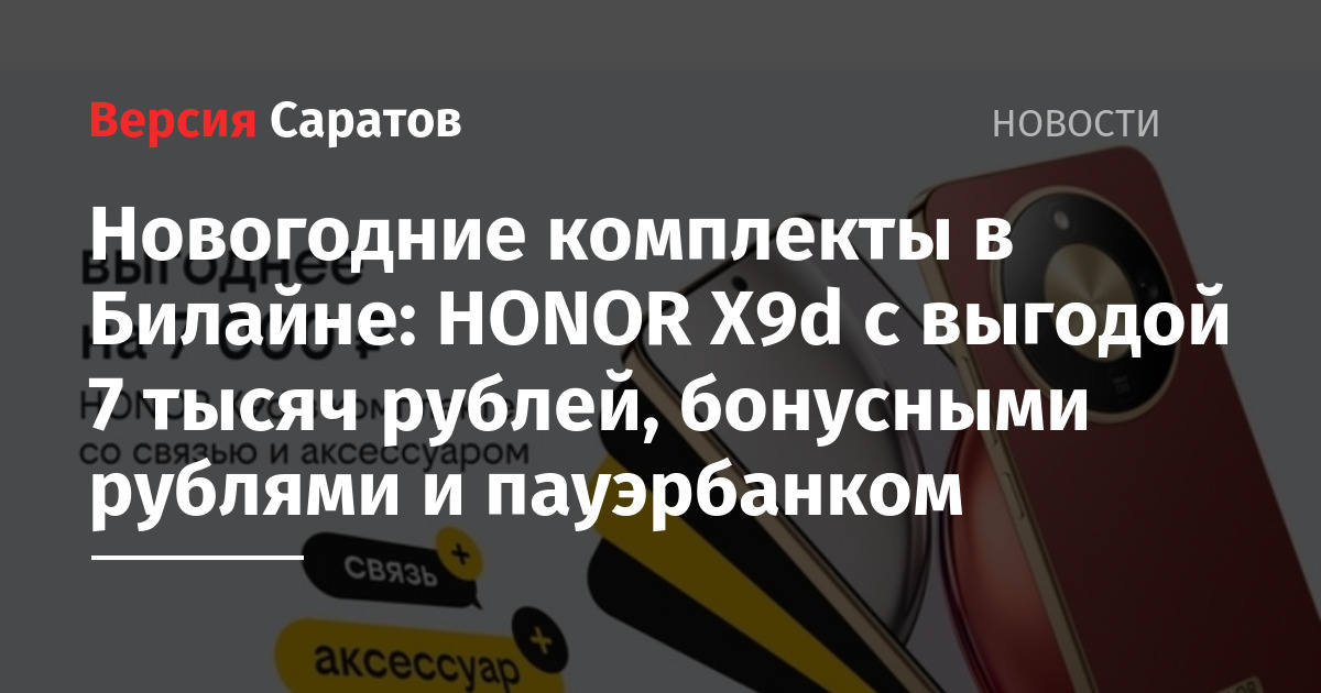 В новогодней подборке оператора одним из ключевых предложений стал HONOR X9d 256 Гб, который можно приобрести с выгодой в 7000 рублей. За стоимость смартфона при покупке в интернет-магазине Билайна клиент получает 6000 бонусных рублей на связь и портативное зарядное устройство. Совершая покупку в офисах обслуживания, клиенты могут выбрать вместо пауэрбанка другие дополнительные товары и услуги.