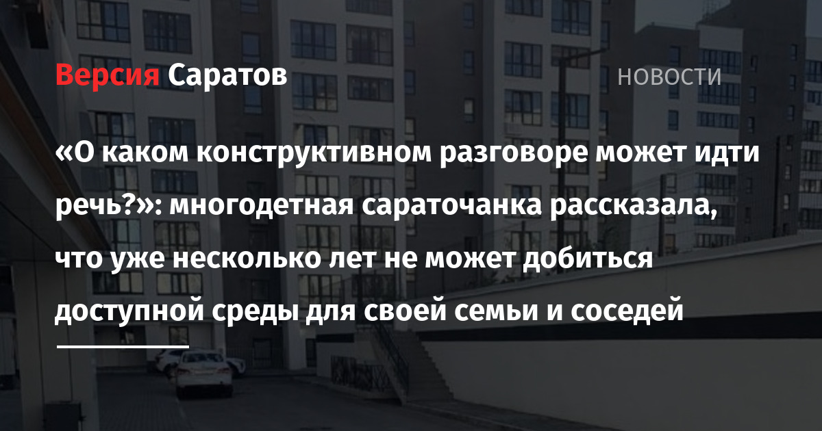 «О каком конструктивном разговоре может идти речь? Вот многодетная мама, прошла три операции, а на мою проблему и не только мою, но еще и других маломобильных групп жильцов дома № 8 по Булгакова, администрация говорит: „Решения нет“», — написала Карина Голик.