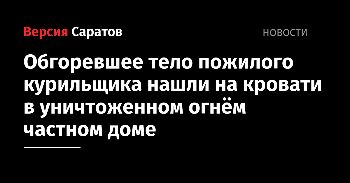 Возгорание частного дома, где проживал 62-летний мужчина, соседи заметили днём. Пожарные локализовали возгорание. После тушения огня в жилой комнате на кровати обнаружено сильно обгоревшее тело хозяина. Следователь осмотрел сгоревший дом. «По основной версии, причиной пожара могло стать неосторожное обращение с огнем при курении», — сообщили в СУ СК по Саратовской области.