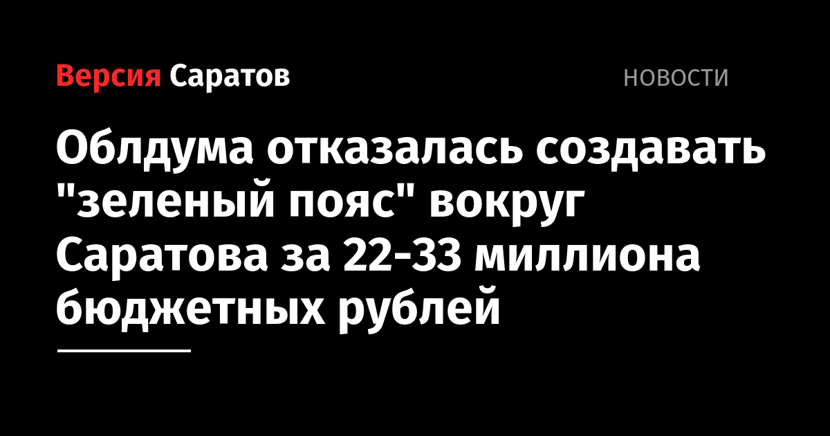 Облдума отказалась создавать "зеленый пояс" вокруг Саратова за 22-33 миллиона бюджетных рублей