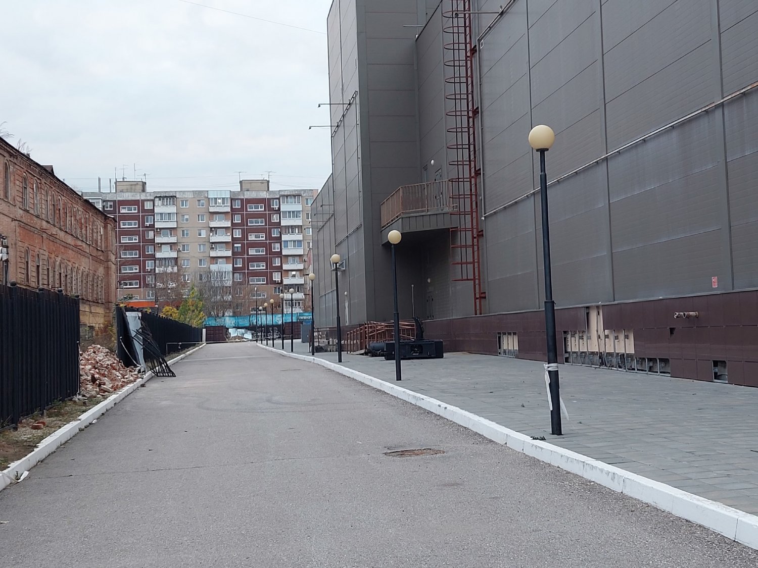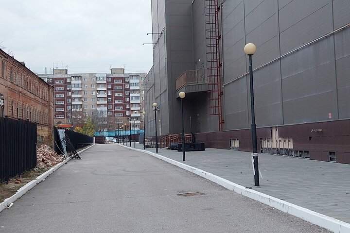 Площадка вокруг исторического здания не огорожена сплошным забором. Кирпичи, упавшие с постройки, высыпались на территорию музея. Сломанный во время обрушения забор так и не заменили: погнутая решетка стоит возле проема в заборе. Также во время июльского обрушения была повреждена плитка на стене музея. Ее до сих пор не восстановили.
