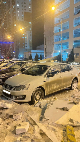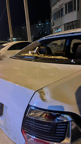 Также она прислала фото, на которых отчётливо видно завалы, возникшие в результате обрушения, и покрытую вмятинами и другими повреждениями иномарку.