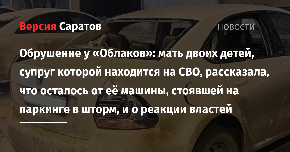 Обрушение у «Облаков»: мать двоих детей, супруг которой находится на СВО, рассказала, что осталось от её машины, стоявшей на паркинге в шторм, и о реакции властей