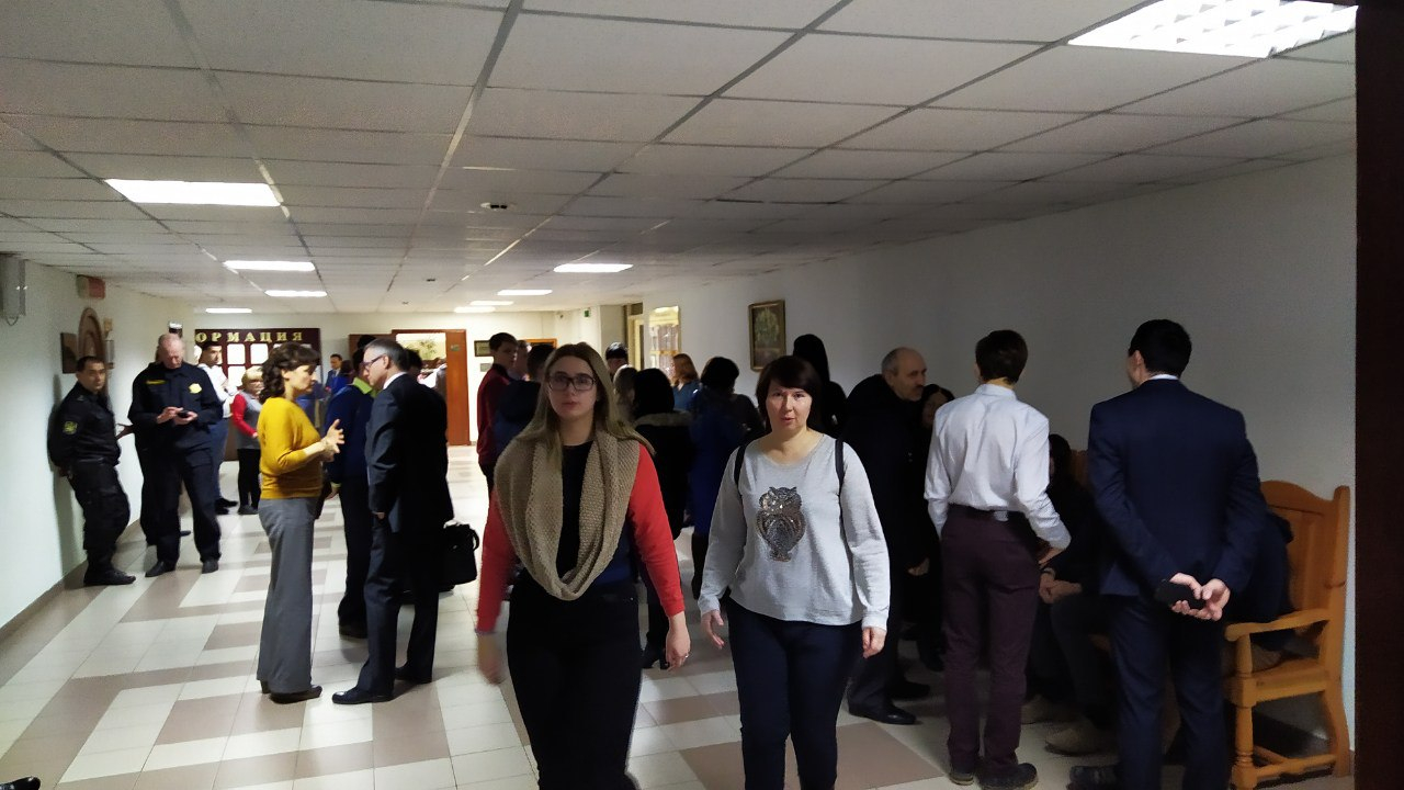 Процесс должен начаться в 10:00, однако по состоянию на это время большая часть пришедших все еще толпилась на входе в суд. Судебные приставы работают в усиленном режиме, чтобы записать паспортные данные всех пришедших.