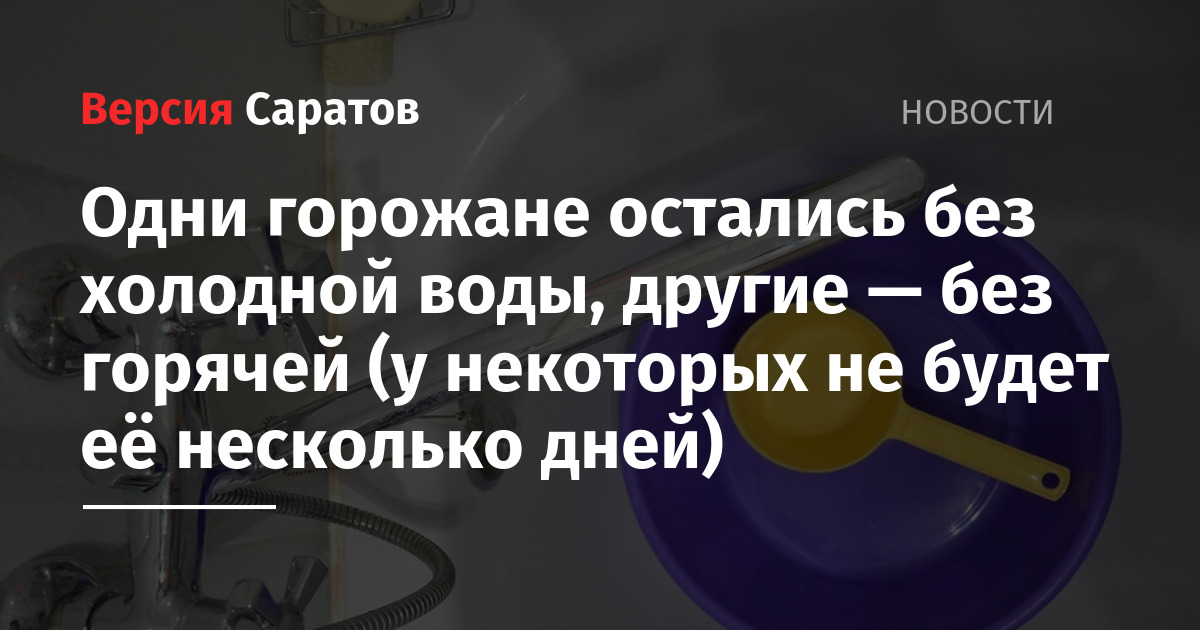 Сегодня, 7 октября, одни жители Саратова остались без горячей, другие — без холодной воды.