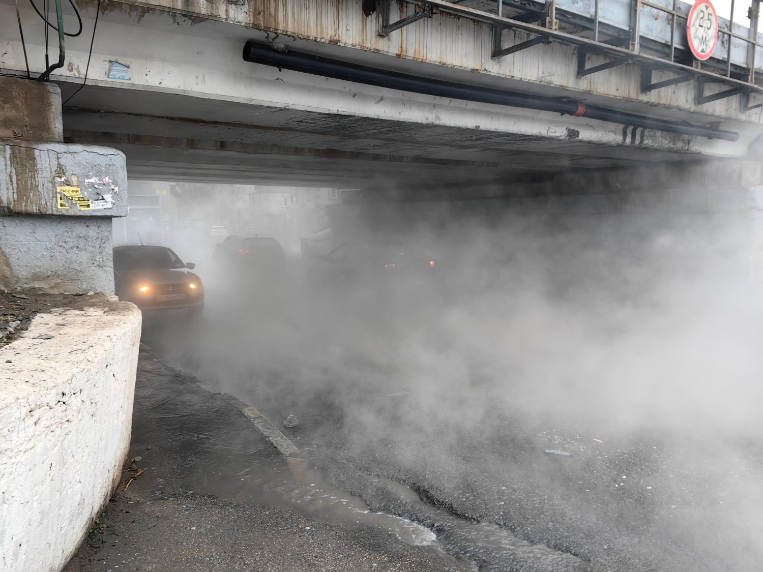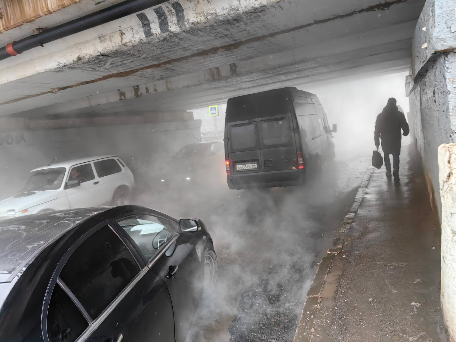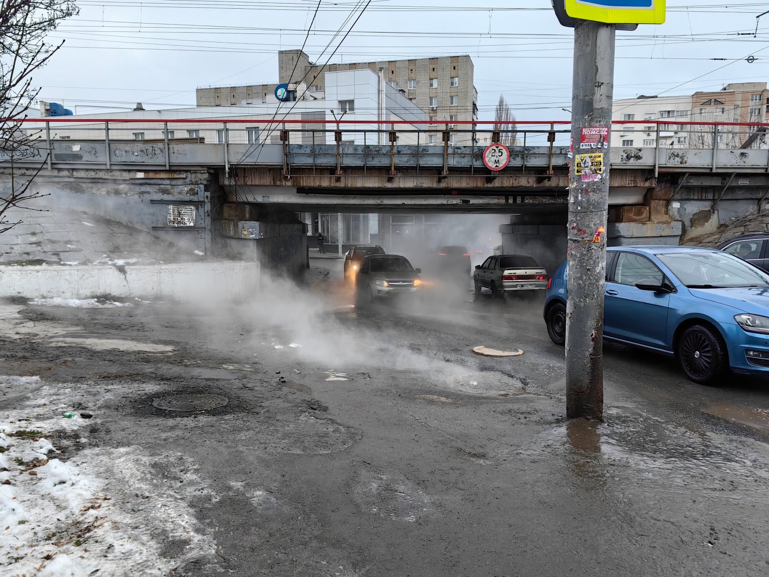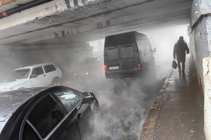 Сегодня с утра, 22 декабря, тоннель под железнодорожными путями, который соединяет завокзалье с остальной частью Саратова, заволокло густым, неприятно пахнущим паром, а на дороге образовалась огромная пробка. Об этом ИА «Версия-Саратов» рассказал читатель, который предоставил редакции фото.