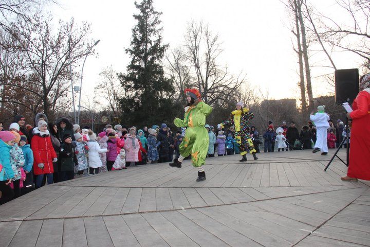 Сегодня, 21 декабря, в Городском парке состоялось торжественное открытие резиденции Деда Мороза и главной новогодней елки в Октябрьском районе. На праздник пришли около 1000 детей и взрослых, они расположись вокруг елочной конструкции.
