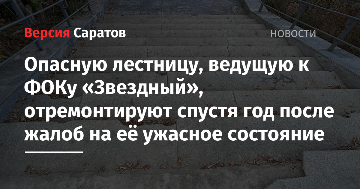 Напомним, жители уже не первый год жаловались на ужасное состояние лестницы, которая ведет к «Звездному». «Годами никто не убирает и не ремонтирует лестницу. Каждый день вижу, как дети, идущие заниматься спортом, падают на отвалившихся ступенях. В понедельник женщина с ребенком упала и рассекла лицо, всё в крови. Вы либо почините, либо закройте лестницу, она травмоопасна», — писали в прошлом году жители обращения к властям.