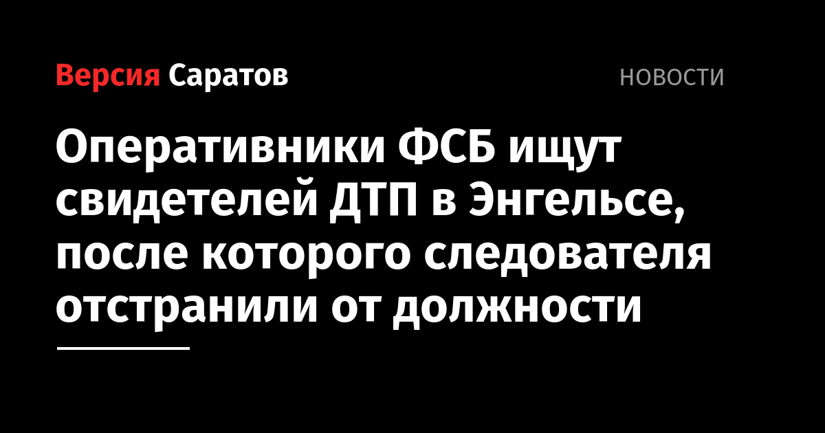 Оперативники ФСБ ищут свидетелей ДТП в Энгельсе, после которого следователя отстранили от должности