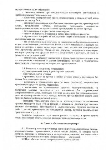 Водителю и кондуктору запрещается курить, принимать пищу в транспортном средстве, включать громкую музыку, высаживать из транспортного средства несовершеннолетних, не достигших возраста 16 лет. С полной версией правил можно ознакомиться в документе, опубликованном ниже.