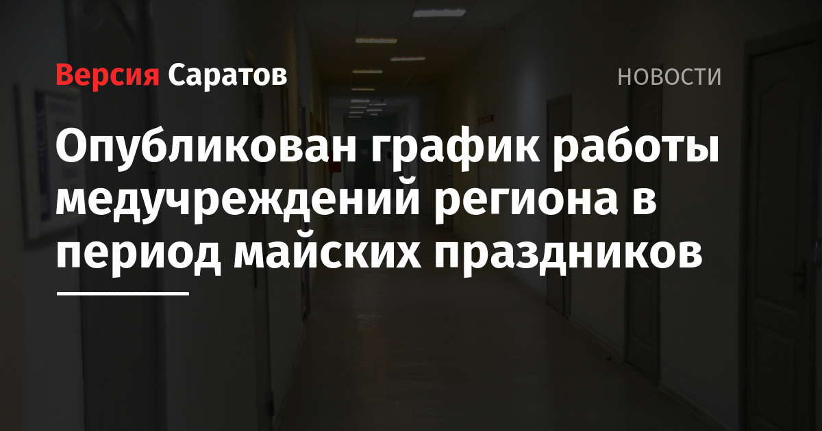 Стало известно, как будут работать медучреждения в Саратовской области в предстоящие праздники — с 1 по 3 мая. Информацию публиковал региональный минздрав.